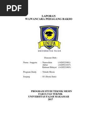 Contoh laporan wawancara pedagang bakso. We did not find results for: Maybe you would like to learn more about one of these? Check spelling or type a new query.